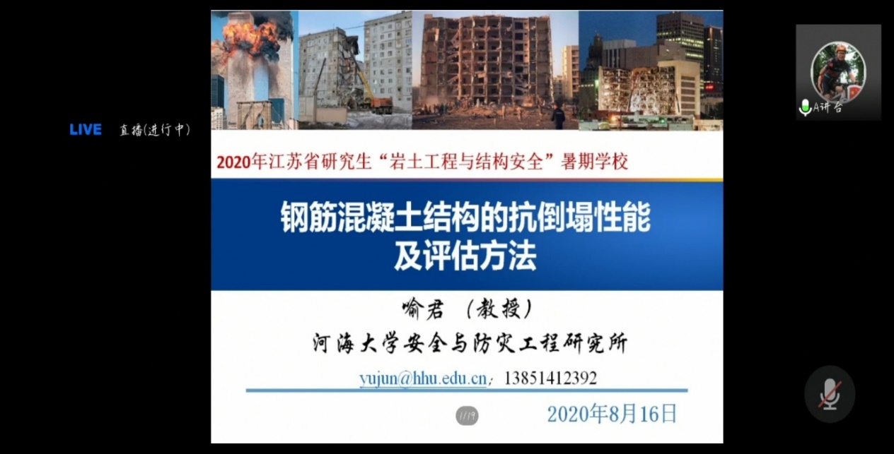 8月16日是2020年江苏省研究生“岩土工程与结构安全”暑期学校的第七天。今天的学术报告由太阳集团tyc151陈育民教授主持。