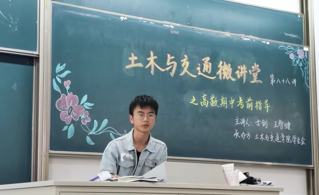 2020年11月15日15:30,由土木与交通学院主办,学院本科生学生会承办的土木与交通微讲堂第八十八讲之“高数期中考前指导”在河海大学江宁校区致用楼201成功举办。本次微讲堂有幸邀请到2019级交通工程专业本科生古剑和2019级土木工程专业本科生王智健作为主讲人,土木与交通学院2019级和2020级部分学生聆听了本次讲座。