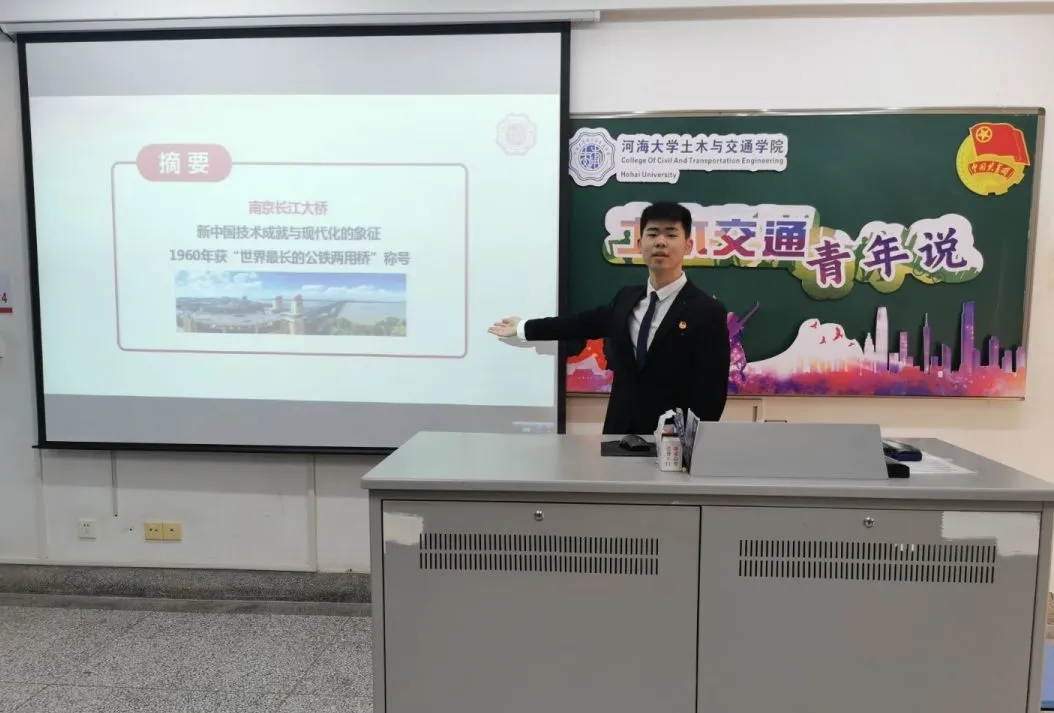 主讲人程乐文同学聚焦南京长江大桥,为大家讲解了南京长江大桥在中国桥梁史和世界桥梁史上的重要意义,感悟南京长江大桥背后的红色精神。