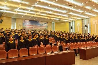 研究生毕业生代表薛鑫同学发言,总结了三年的研究生生活让自己学会了担当、体味了生命的精彩。她代表2022届毕业生作出承诺,一定会在未来的工作、学习中将新时代青年的理想内化于心、外化于行,用青春热血去书写绚丽华彩的中国梦。