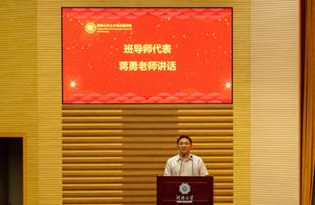 班导师代表蒋勇老师发言。蒋老师首先向毕业生们表示了最诚挚的祝贺,并向在同学们身后默默付出的父母们致以了最真诚的感谢。同时用幽默诙谐的语言与同学们回顾了丰富多彩的大学校园生活,讲述了大家怀揣梦想来到学校,在大学期间步履不停地耕耘,从直面困难中收获成长的温暖瞬间。临别之际,蒋老师希望同学们在未来的路上不忘初心,奋勇前行,书写精彩的人生画卷。