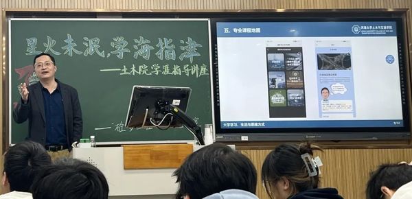 之后,刘院长与同学们展望土木工程与交通工程的未来。他指出“可见生态化、智能化与专业领域相结合已成为必然之势”,他鼓励同学们积极钻研自己感兴趣的方面,拓宽自己知识面,发挥学科交叉优势。他向同学们展示“专业课程地图”小程序,为同学们提供了一个获取更多专业知识的平台,可以用来帮助同学们更好地规划人生道路。