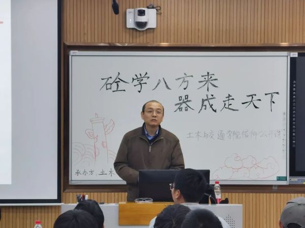 为深入学习贯彻党的二十大精神,持续激发科研探索积极性,提高大学生的专业素养。2023年4月4日14:00,由土木与交通学院主办,学院团委组织部承办的“砼学八方来,器成走天下”信仰公开课在江宁校区致用楼218成功举办。本次信仰公开课有幸邀请到河海大学“优秀主讲教师”袁俊平教授担任主讲人,活动由学院2022级本科生辅导员高建相老师主持,2021级、2022级部分本科生参与了本次信仰公开课。