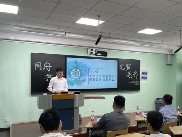 为了帮助同学们更好地了解专业发展大势,做好生涯规划,促进同学们全面健康发展,太阳集团tyc151于2023年6月9日在江宁校区致用楼226举办“见贤思齐,同舟共济”主题班会。学院副院长周继凯教授、班级企业导师中建四局南京公司管聪聪总工程师、班导师孙宝印老师、本科21级辅导员韩新禹老师以及本科21级土木三班全班同学参加本次班会。