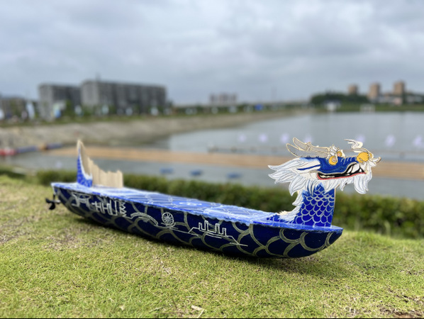 我院参赛作品“木兰·神花号”取自《午日观竞渡》中的“共骇群龙水上游,不知原是木兰舟”,以及“骨气贯麒骅,铁板铜琶,清风明月赋神花”,船体印有“大哉河海奔前程”的字样和仙鹤、祥云、海浪等节日元素,将现代元素与传统文化相结合,彰显团队成员们敢于创新、勇于突破、如龙舟般突破海浪冲向胜利的态度与精神。“应龙号”取屈原《天问》“河海应龙,何画何历”为整体设计理念,融入河海大学“天下有溺犹己溺”的意象,体现“己溺己饥、天下己任,乘舟乘橇、开拓进取”的精神气象,龙舟以蓝色为主色调,以银色龙鳞为底,右侧画有河海大学地标建筑组合成的几何图形,寓意着广大学子敢于担当、甘于奉献的时代精神。两艘船体混凝土配料达到PVC-ECC最优配比,具有良好的承载力和延展性,经过CFD模拟分析,船体纵倾极小,船体结构的安全性得到了考证。