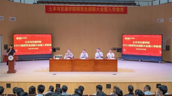 2023年9月9日13:00,土木与交通学院2023级研究生迎新大会暨入学教育在常州新校区04音乐厅隆重举行。土木与交通学院院长高玉峰教授、副院长周继凯教授、副院长刘云副教授、副院长朱其志教授、各系所负责人、兼职辅导员、教学秘书、研究生辅导员邵文慧以及2023级全体研究生参加了本次会议。大会由王璐副书记主持。