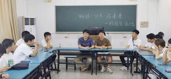 首先,段振宇和孟祥宇同学与新生围坐交流分享自己的学习经验和大学生活经历,介绍了学校周边的美食景点。两位学长建议新生们要学会合理规划自己的时间,逐渐适应大学的生活节奏,保持良好作息并坚持锻炼增强体魄。大学不仅要学好,也要玩好,在努力学习的同时可以适当参加学生社团丰富自己的生活。