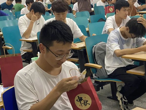无论是生于江苏、安徽还是从广西、西藏迢迢赶来的同学,大家都敞开心扉、畅所欲言,相互讨论着家乡的中秋习俗和初入河海的切身感受。