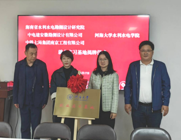 在与会人员的共同见证下,水电院与海南省水利水电勘测设计研究院有限公司、中电建安徽勘测设计有限公司、中铁七局集团南京工程有限公司,土木院与中铁大桥局二公司、中建八局总承包公司江苏分公司、上海建工二建集团共同签订了合作协议并为“就业实习基地”揭牌。
