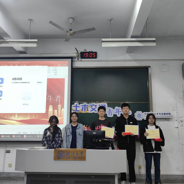 在活动结束后,土木与交通学院团委青年发展部副部长和干事为五位主讲人颁发荣誉证书并赠送精美礼品。