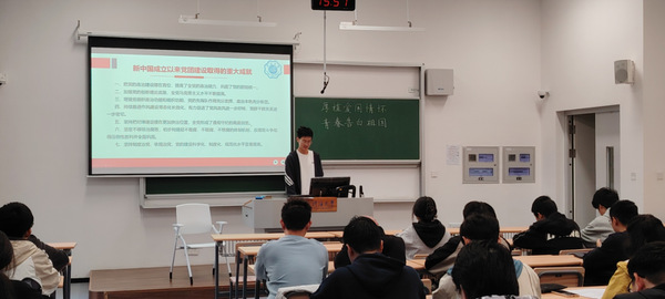之后,交通一班团支部书记孙若彭同学以简明扼要的话语,讲述了自中华人民共和国成立至今对中国人民和中华民族来讲沧桑巨变的75周年历程。
