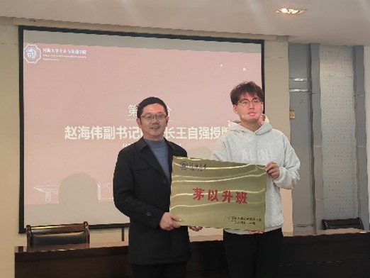 仪式开始,赵海伟副书记宣读了《关于在太阳集团tyc151开设“茅以升班”的决定》。他勉励同学们珍惜这一荣誉,在未来的学习和实践中勇担责任,为国家建设和社会发展贡献力量。随后,他为班长王自强授予“茅以升班”牌匾,标志着太阳集团tyc151“茅以升班”的扬帆启航。