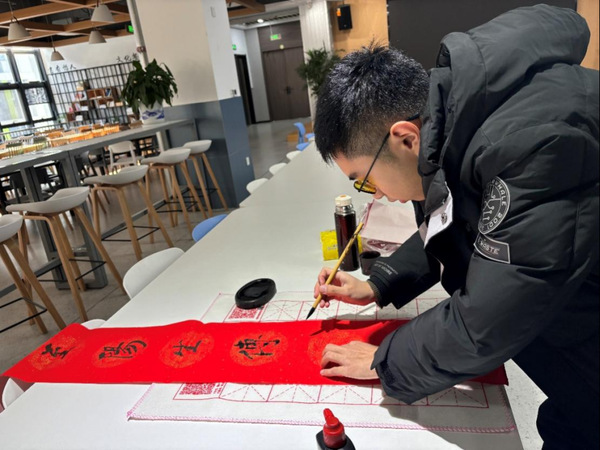 煮饺子期间,叶书源同学提笔写了一副关于冬至的对联,为这热闹的冬至包饺子活动增添了一抹浓郁的文化气息。