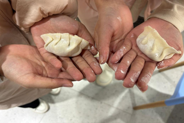 下午两点整,包饺子活动正式开始。同学们中既有经验丰富的包饺子能手,也有初次尝试的新手,大家互帮互助,相互学习,创造出属于他们的独特作品,每一个饺子都饱含着欢乐与温暖。