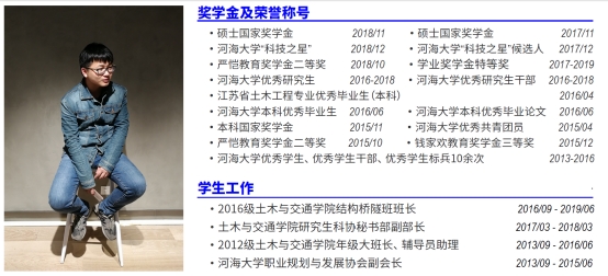 4)河海大学研究生科技之星”1人(2018,每年在全校博士研究生和硕士研究生共评选出20人)
