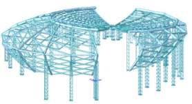 多层钢桁架施工现场                多层钢桁架三维模型图